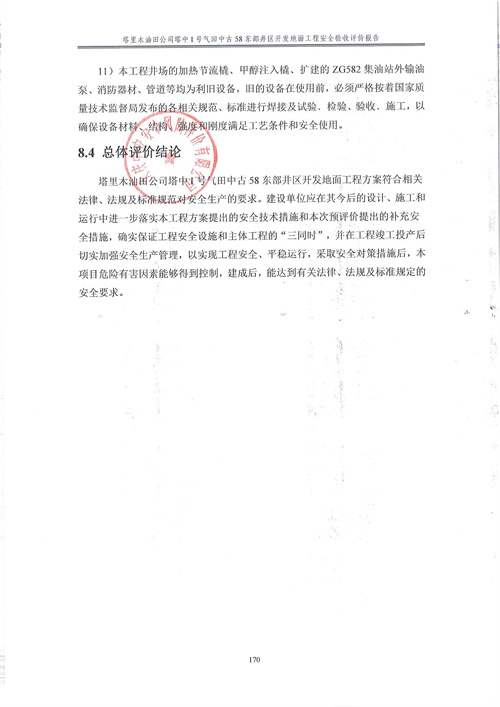 塔里木油田公司塔中I號(hào)氣田中古58東部井區(qū)開(kāi)發(fā)地面工程方案符合相關(guān)法律、法規(guī)及標(biāo)準(zhǔn)規(guī)范對(duì)安全生產(chǎn)的要求。建設(shè)單位應(yīng)在其今后的設(shè)計(jì)、施工和運(yùn)行中進(jìn)一步落實(shí)本工程方案提出的安全技術(shù)措施和本次預(yù)評(píng)價(jià)提出的補(bǔ)充安全措施,確實(shí)保證工程安全設(shè)施和主體工程的“三同時(shí)”,并在工程竣工投產(chǎn)后切實(shí)加強(qiáng)安全生產(chǎn)管理,以實(shí)現(xiàn)工程安全、平穩(wěn)運(yùn)行,建成投產(chǎn)后可以達(dá)到安全生產(chǎn)的目的。 |