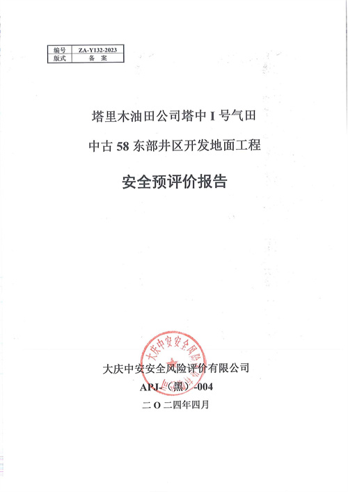 塔里木油田公司塔中I號(hào)氣田中古58東部井區(qū)開(kāi)發(fā)地面工程安全預(yù)評(píng)價(jià)報(bào)告