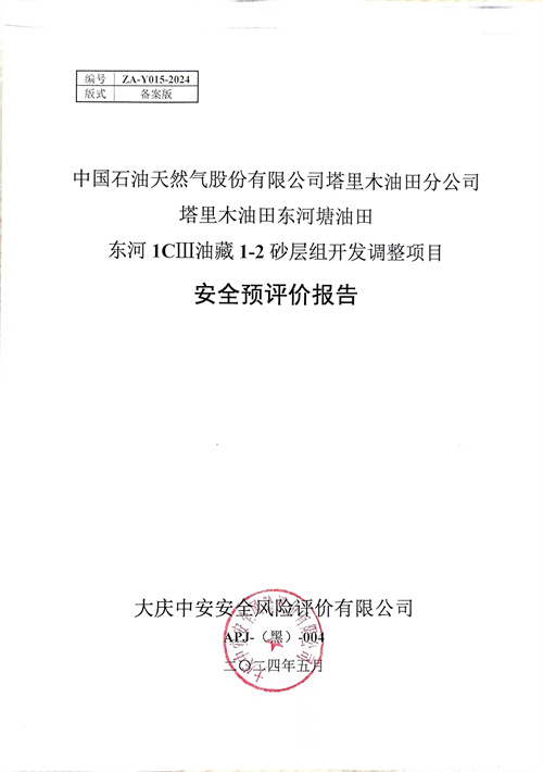 中國石油天然氣股份有限公司塔里木油田分公司塔里木油田東河塘油田東河1CⅢ油藏1-2砂層組開發(fā)調(diào)整項目安全預評價報告 |