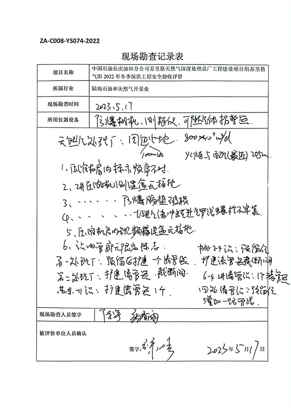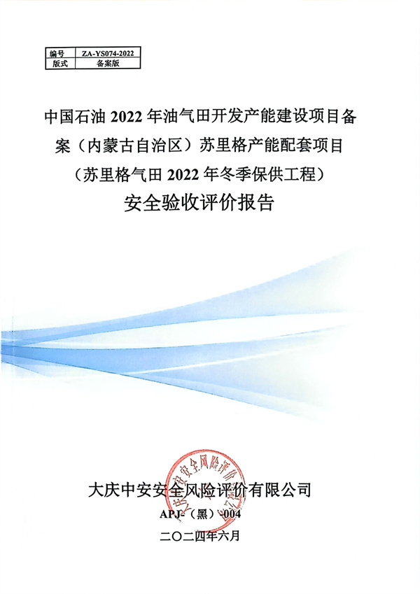 中國石油2022年油氣田開發(fā)產能建設項目備案(內蒙古自治區(qū))蘇里格產能配套項目(蘇里格氣田2022年冬季保供工程)安全驗收評價 |