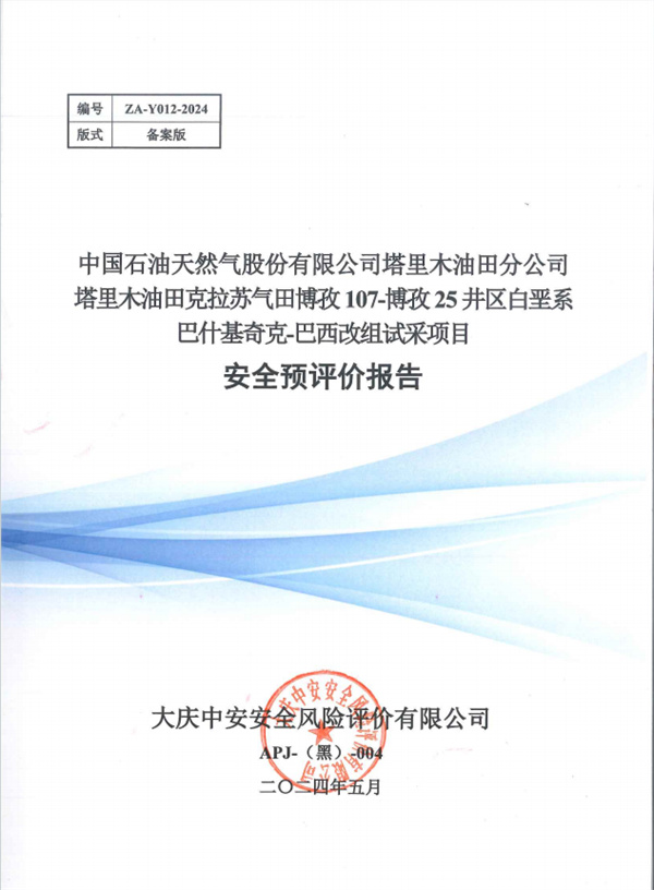 中國石油天然氣股份有限公司塔里木油田分公司塔里木油田克拉蘇氣田博孜107-博孜25井區(qū)白堊系巴什基奇克-巴西改組試采項(xiàng)目安全預(yù)評價(jià)報(bào)告