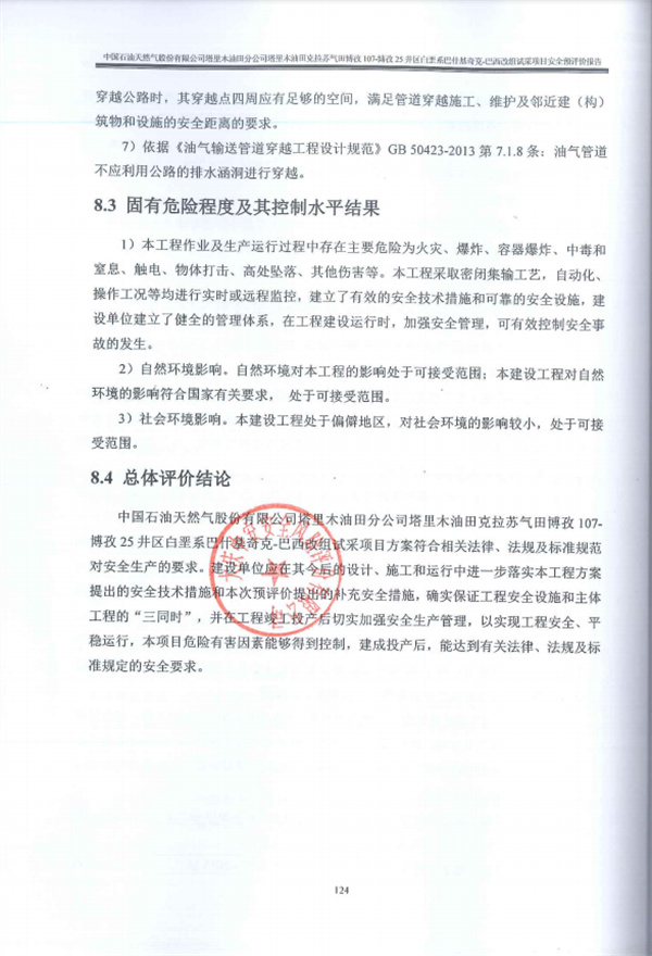 中國石油天然氣股份有限公司塔里木油田分公司塔里木油田克拉蘇氣田博孜107-博孜25井區(qū)白堊系巴什基奇克-巴西改組試采項(xiàng)目方案符合相關(guān)法律、法規(guī)及標(biāo)準(zhǔn)規(guī)范對安全生產(chǎn)的要求。建設(shè)單位應(yīng)在其今后的設(shè)計(jì)、施工和運(yùn)行中進(jìn)一步落實(shí)本工程方案提出的安全技術(shù)措施和本次預(yù)評價(jià)提出的補(bǔ)充安全措施,確實(shí)保證工程安全設(shè)施和主體工程的“三同時(shí)”,并在工程竣工投產(chǎn)后切實(shí)加強(qiáng)安全生產(chǎn)管理,以實(shí)現(xiàn)工程安全、平穩(wěn)運(yùn)行,本項(xiàng)目危險(xiǎn)有害因素能夠得到控制,建成投產(chǎn)后,能達(dá)到有關(guān)法律、法規(guī)及標(biāo)準(zhǔn)規(guī)定的安全要求。 |