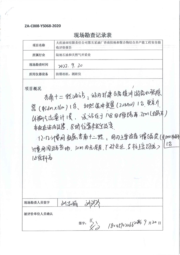 大慶油田有限責(zé)任公司第五采油廠杏南扶楊和聚合物結(jié)合井產(chǎn)能工程安全驗(yàn)收評(píng)價(jià)報(bào)告 |