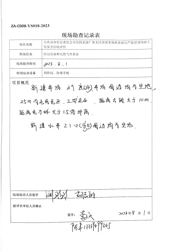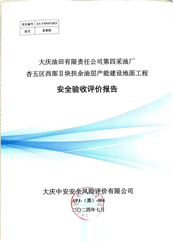 大慶油田有限責(zé)任公司第四采油廠(chǎng)杏五區(qū)西部ⅱ塊扶余油層產(chǎn)能建設(shè)地面工程安全驗(yàn)收評(píng)價(jià)報(bào)告 |