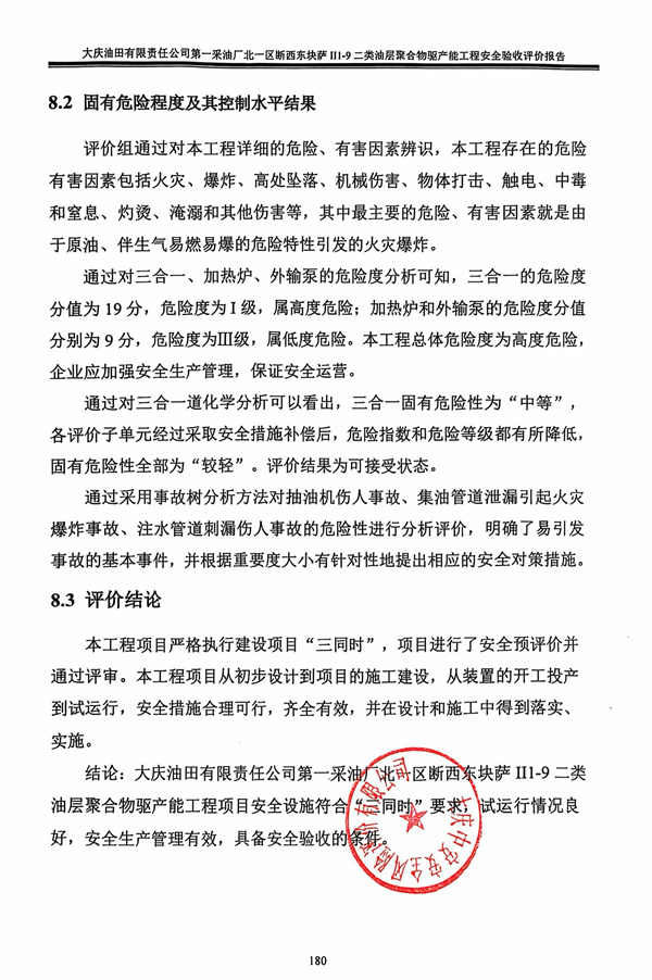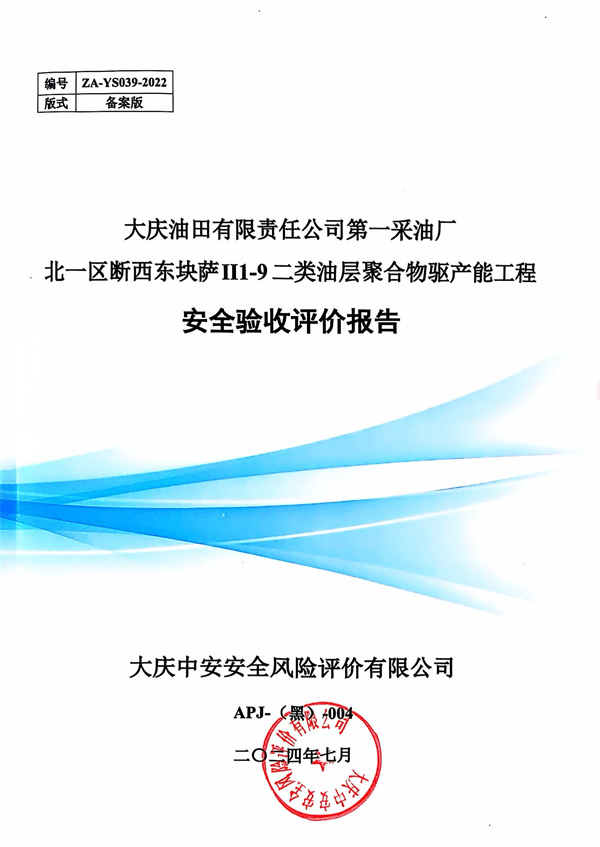 大慶油田有限責任公司第一采油廠北一區(qū)斷西東塊薩II1-9二類油層聚合物驅(qū)產(chǎn)能工程安全驗收評價報告