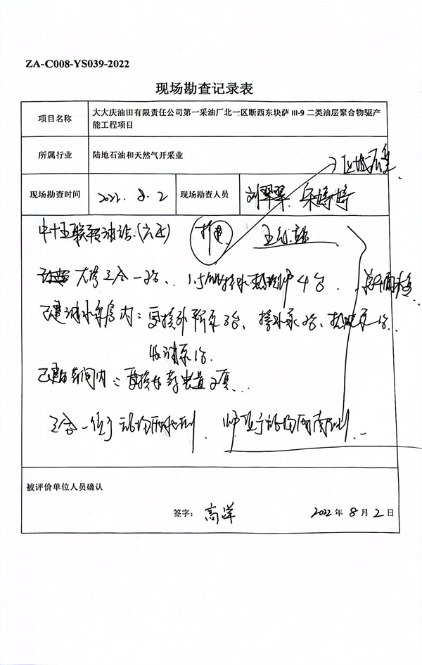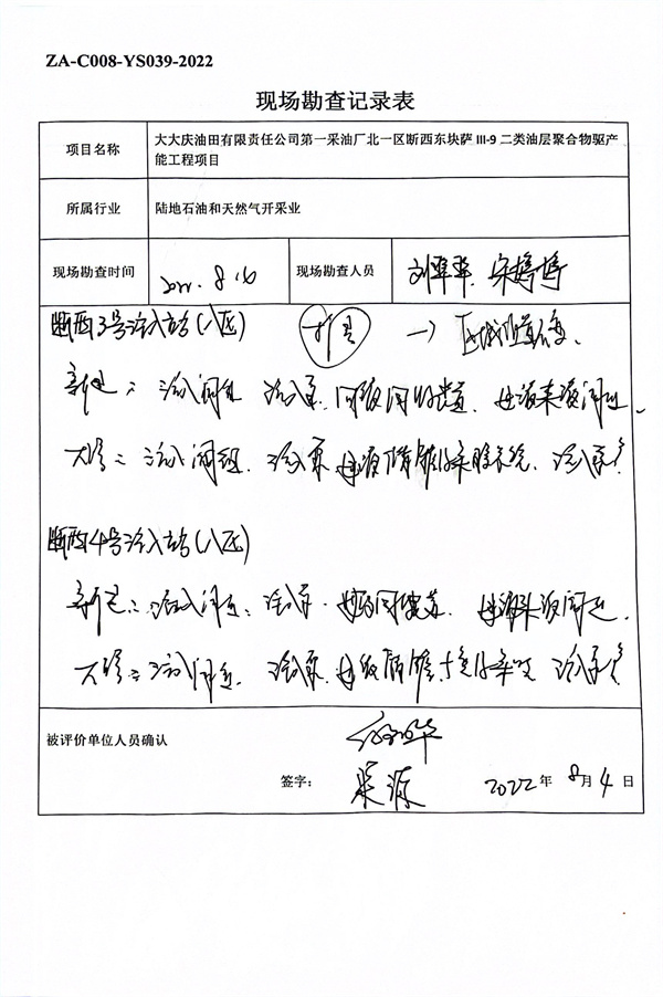 大慶油田有限責任公司第一采油廠北一區(qū)斷西東塊薩II1-9二類油層聚合物驅(qū)產(chǎn)能工程安全驗收評價 |