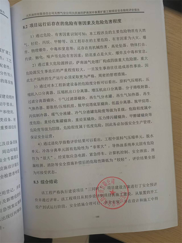 大慶油田有限責(zé)任公司天然氣分公司大慶油田薩南深冷裝置擴(kuò)建工程項(xiàng)目安全驗(yàn)收評(píng)價(jià)報(bào)告