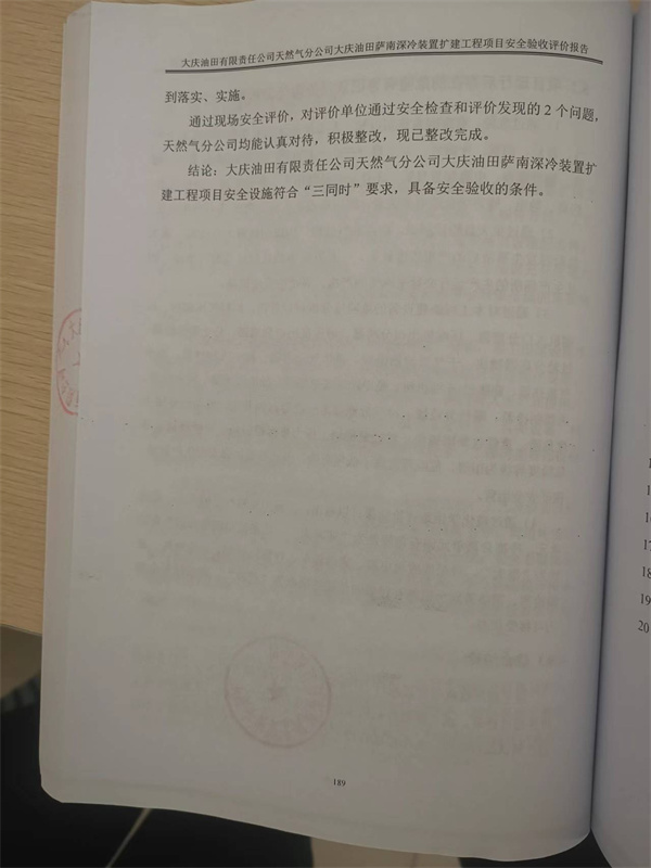 大慶油田有限責(zé)任公司天然氣分公司大慶油田薩南深冷裝置擴(kuò)建工程項(xiàng)目安全驗(yàn)收評(píng)價(jià)報(bào)告 |